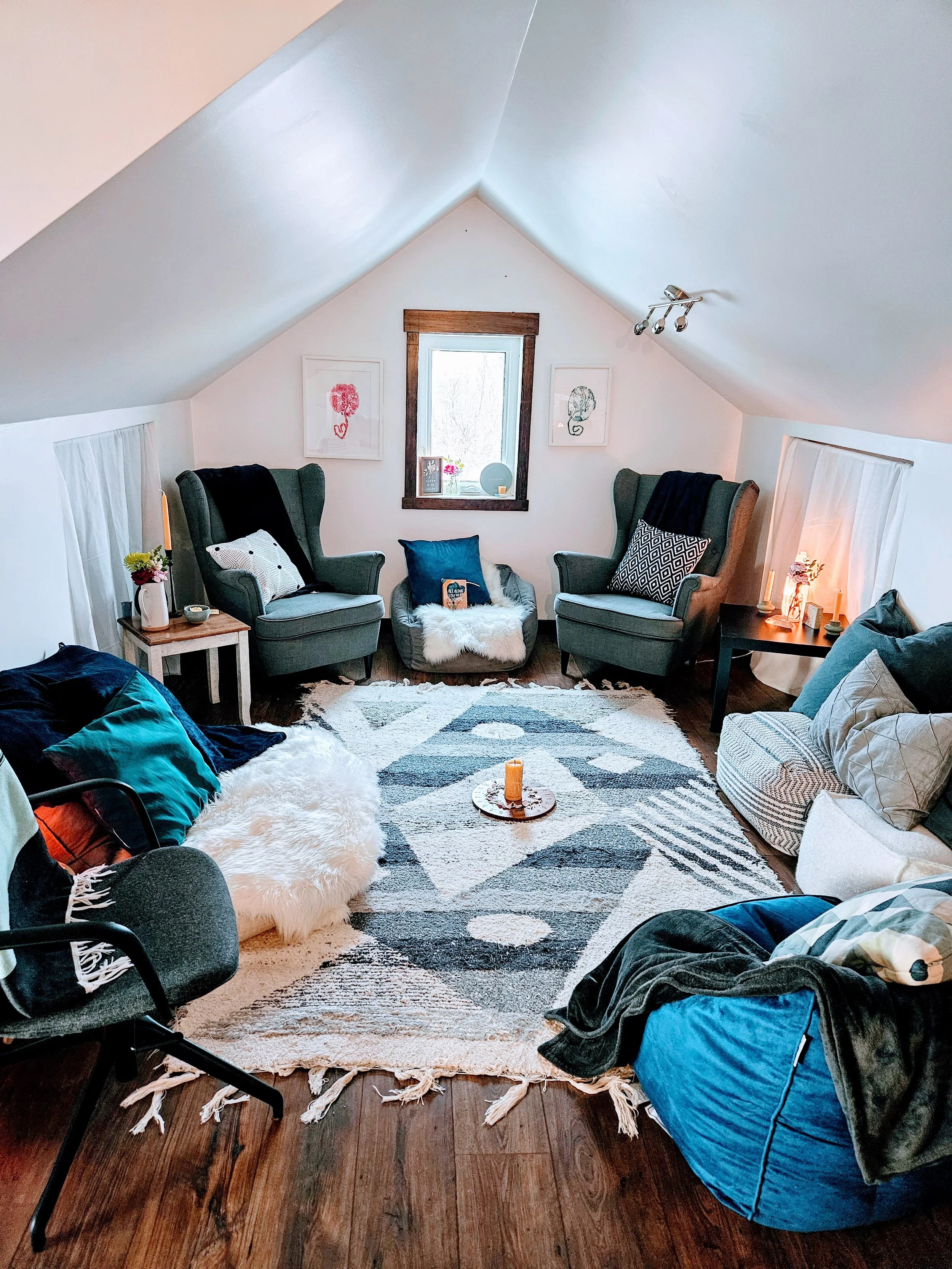 Our Women’s Circle is a place for women to find sisterhood, healing, meaningful connection, intentional reflection and self growth. Circles are held in The Attic, in a private home north of Kindersley. The space is cozy and welcoming, with fresh flowers, candles, light tasty food and refreshing beverages included. Each circle also features and activity related to the topic we discuss with all supplies are included. Location details are sent after registration.